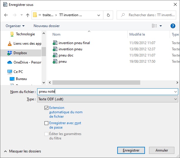 A droite, on enregistre le fichier qui se nommera pneu noté dans le répertoire TTinvention.