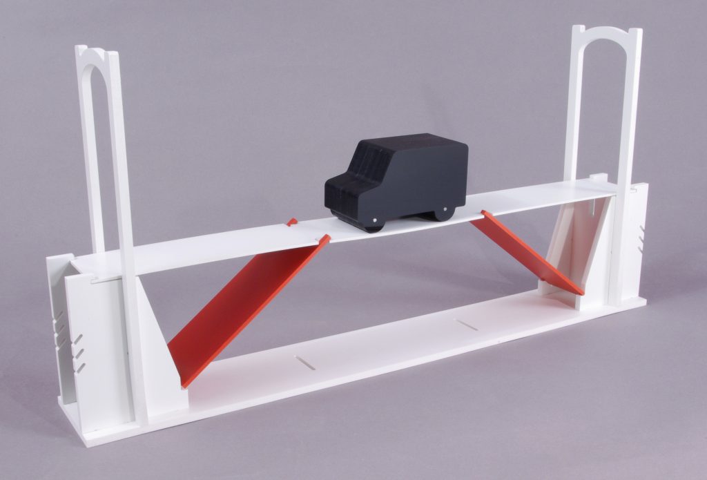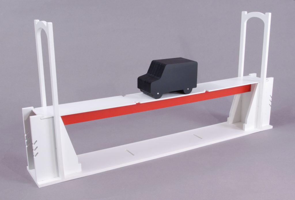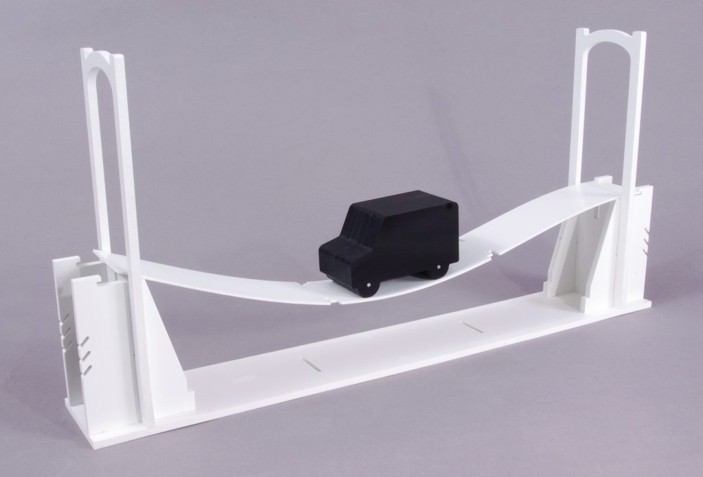 Placer le tablier du pont sur ces supports, ensuite le camion au centre, que se passe-t-il ?