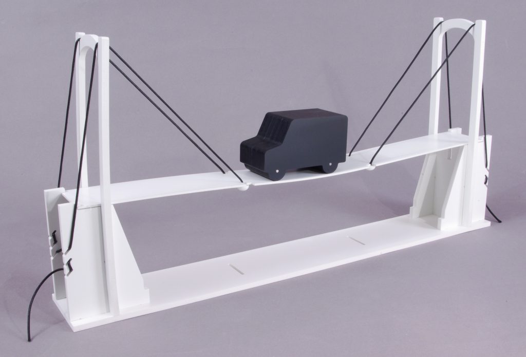 La maquette simule à la fois les ponts suspendus et à haubans.
