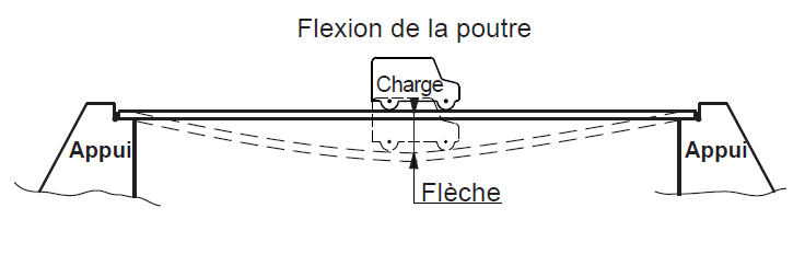 La distance entre le tablier au repos et le tablier sous l’action de la charge s’appelle la flèche.